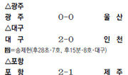 포항의 막판 질주가 무섭다. 포항은 2일 포항 스틸야드에서 열린 정규리그 안방경기에서 제주를 2-1로 이기고 5연승을 달렸다. 2위 포항은 16승 7무 4패(승점 55)를 기록하며 선두 전북(17승 6무 3패·승점 57)을 승점 2점 차로 추격했다. 포항은 3경기, 전북은 4경기를 남겨 놓고 있다. 포항으로선 정규리그 역전 우승도 노려볼 수 있는 상황이다. 포항은 전반 3분 제주 골문 앞 오른쪽에서 올린 슈바의 크로스를 받은 아사모아가 수비수를 제치고 선제골을 넣으며 앞서 나갔다. 포항은 전반 22분 신광훈의 땅볼 패스를 받은 모따가 페널티 지역 오른쪽에서 슈팅으로 연결해 추가골을 얻었다. 모따는 최근 4경기 연속 득점(5골)하며 포항의 연승 행진을 이끌었다. 제주는 후반 19분 김은중의 패스를 받은 산토스가 한 골을 만회하는 데 그쳤다. 8위 제주(9승 10무 8패·승점 37)는 최근 7경기 연속 무승(4무 3패)으로 시즌 막판 부진하며 애를 태웠다. 경남은 갈 길 바쁜 부산의 발목을 잡고 6강 플레이오프 진출 희망을 이어갔다. 경남은 부산 구덕운동장에서 열린 방문경기에서 1-0으로 이겼다. 경남은 전반 16분 조르단이 페널티 지역 오른쪽에서 넘겨준 공을 호니가 오른발 슛으로 연결해 선제 득점한 뒤 부산의 반격을 막아내 승리했다. 경남은 이날 승리로 10승 6무 11패(승점 36)를 기록하며 9위를 유지했지만 6위 부산(11승 7무 9패·승점 40)과의 승점을 4점 차로 줄였다. 7위 울산(11승 6무 10패·승점 39)은 13위 광주(7승 8무 11패·승점 29)와 득점 없이 비겼다.이원홍 기자 bluesky@donga.com}