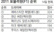 시속 300km를 넘게 달려온 뜨거운 차체 위로 뛰어올랐다. 굉음을 내던 머신 위에서 발을 구르며 환호했다. 압도적인 승리였다. 포뮬러원(F1) 그랑프리의 떠오르는 태양 제바스티안 페텔(24·독일·레드불·사진)이 16일 전남 영암에서 열린 2011 코리아 그랑프리에서 1시간38분1초994의 기록으로 1위를 차지했다. 이미 올 시즌 종합우승을 확정지은 페텔은 이날 승리로 올 시즌 10번째 그랑프리 우승컵을 차지했다.올 시즌 남은 그랑프리대회는 세 차례. 페텔은 남은 3개의 대회에서 모두 우승하면 F1의 ‘전설’ 미하엘 슈마허(42·독일·메르세데스GP)가 갖고 있는 한 시즌 최다승 기록(13승)과 타이를 이룬다.페텔은 15일 열린 예선에서는 루이스 해밀턴(26·영국·맥라렌메르세데스)에 이어 2위를 차지했다. 예선에서의 성적순으로 출발선 위치가 정해진다. 해밀턴은 결선에서 출발선 맨 앞에서 출발했지만 한 바퀴를 채 돌지도 못하고 페텔에게 추월을 허용했다. 페텔은 이어 경기가 끝날 때까지 피트 스톱(바퀴를 갈거나 차체를 갈기 위해 잠시 멈추는 것)을 할 때를 제외하고는 좀처럼 선두를 내주지 않고 질주한 끝에 승리했다. 경기를 종료할 때는 2위와의 격차를 12.019초로 벌렸다.페텔이 처음부터 선두를 질주하는 동안 2위를 놓고 숨 막히는 결투가 벌어졌다. 해밀턴과 마크 웨버(35·호주·레드불)는 0.1∼5초 사이를 오가는 대접전을 벌이며 레이스에 불꽃 튀는 긴장감을 불어넣었다.해밀턴은 이날 접지력은 좋지만 내구성이 떨어지는 슈퍼 소프트 타이어를 먼저 장착하고 나왔고 웨버는 처음부터 내구성이 좀 더 강한 소프트 타이어를 끼고 나왔다. 해밀턴의 타이어가 점차 접지력을 상실하며 웨버에게 추월을 허용하려는 순간이 닥치자 해밀턴은 인사이드 코스를 차지하며 기가 막히게 웨버의 추월을 가로막았다. 추월할 듯 추월할 듯 뒤따라가던 웨버는 해밀턴의 인사이드 코너링을 넘어서지 못했다. 승부의 고비가 된 두 번째 피트 스톱에서 해밀턴은 슈퍼 소프트 타이어대신 소프트 타이어를 장착하며 접지력을 회복했다. 해밀턴과 동시에 피트 스톱을 한 웨버는 추월을 위해 접지력이 더 좋은 슈퍼 소프트로 바꿀 것으로 예상됐으나 그대로 소프트 타이어를 고집했다. 타이어를 갈고 출발할 때까지 해밀턴은 3.7초, 웨버는 3.8초가 걸렸다. 두 선수는 박빙의 레이스 끝에 결국 해밀턴이 2위를 차지했다. 웨버는 0.458초 차로 3위에 머물렀다. 한편 이날 페텔과 웨버의 소속팀인 레드불은 각 소속팀 선수들의 시즌 점수 합계로 우승을 가리는 팀 순위(컨스트럭트 챔피언)에서도 종합우승을 확정했다. 슈마허는 16바퀴째를 돌던 도중 다른 차와 충돌해 경기를 포기했다.이날 경기장에는 8만4124명의 관중이 찾았다. 출범 2년째를 맞은 코리아 그랑프리는 경기운영이나 각종 주변시설정비 면에서 지난해보다 크게 나아졌다는 평가를 받았다. 영암=이원홍 기자 bluesky@donga.com}