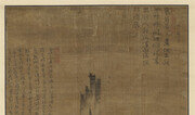 단번에 내리그은 필획에 해면 위에 칼날 같은 바위가 솟아났다. 까마득히 먼 바위 꼭대기에는 바닷새들이 한가롭다. 네 신선이 뛰놀았다는 사선정(四仙亭)은 텅 비었다. 지금은 북한 지역에 있어 가지 못하는 강원도 통천 총석정(叢石亭)을 그린 16세기 중반 그림이다. 그림을 그린 ‘상산일로(商山逸老)’가 누구인지는 모른다. 1557년 봄 홍연(생몰년 미상·1546년 사마시 진사)과 관동 지방을 유람한 뒤 서울에서 벼슬살이를 하며 그 풍광을 그리워했다는 걸 발문에서 알 수 있다. “그곳의 높고도 빼어난 봉우리와 깊고도 그윽한 골짜기며 천태만상의 구름과 산 기운, 아득히 넘실대는 호수와 바다를…”이라고 썼다. 경포대도 그렸다. 그림 위쪽에 오대산이 아득히 자태를 자랑하고, 아래쪽으로 내려가면서 경포대와 경포호, 죽도(竹島)의 풍경이 펼쳐진다. 오른쪽에는 오늘날과 마찬가지로 경포 해변의 모래사장 ‘백사오리(白沙五里)’ 옆으로 해송이 줄지어 서 있다. 총석정도와 경포대도는 강원도 명승지를 그린 가장 오래된 그림일 뿐 아니라 실경산수화의 전통이 겸재 정선(1676∼1759) 이전부터 확립됐음을 드러내는 작품이라고 국립중앙박물관은 설명했다. 두 작품은 재일교포 윤익성 레이크사이드 컨트리클럽 창업주(1922∼1996)의 유족이 고인의 유지를 따라 기부한 돈으로 일본에서 구매했다. 두 작품은 9월 22일까지 서울 용산구 국립중앙박물관 상설관 특별전시실에서 열리는 ‘우리 강산을 그리다: 화가의 시선―조선시대 실경산수화’ 전시에서 볼 수 있다. 화가 김응환(1742∼1789)이 말년에 김홍도와 금강산을 유람하고 그린 ‘해악전도첩(海嶽全圖帖)’은 일반에 처음 공개하는 작품. 이를 비롯해 16∼19세기 그림 360여 점을 볼 수 있다.조종엽 기자 jjj@donga.com}