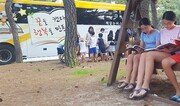 바다 냄새, 솔향기, 그리고 책 냄새. 4일 오후 강원 강릉시 연곡해변캠핑장의 소나무 숲에 자리 잡은 ‘책 읽는 버스’에는 세 가지 냄새가 뒤섞여 있었다. 해수욕을 마치고 얼굴이 붉게 달아오른 아이들과 부모들이 시원한 버스 안으로 모여들었다. ‘책 읽는 버스’는 사단법인 ‘작은도서관만드는사람들’(대표 김수연 목사)이 운영하고 KB국민은행이 후원하는 이동도서관이다. 대형버스를 개조해 서가와 영상·음향시설, 긴 의자를 설치하고 책 1000여 권과 DVD 100개를 들여놨다. 평소 도서관이 먼 산간 도서 지역의 마을이나 농어촌, 사람들이 모이는 축제 현장을 다니는데 이번에는 휴가철을 맞아 강원도의 캠핑장을 찾은 것. 친구 사이로, 가족들이 함께 피서를 온 설유빈 양(서울 월촌초 6)과 서예린 양(서울 가락초 6)이 나란히 버스에 올랐다. “해변에 도서관이라니! 학교에서는 책을 조용히 봐야 하는데, 여기는 그네에 앉아서 자유롭게 읽을 수 있으니까 더 좋네요.”(설 양) “소나무 향기가 나는 곳에서 책을 보니 읽고 싶은 기분이 더 나네요.”(서 양) ‘책 읽는 버스’와 피서객들이 해마다 비슷한 시기에 같은 곳을 찾다 보니 피서지에서 버스 만나기를 기다리는 팬도 생겼다. 가족과 함께 캠핑장에 놀러 온 윤호상 군(경기 광명시 철산초 6)은 작년에도 이 캠핑장에서 버스를 만났고, ‘탈무드’를 선물로 받아 가기도 했다. 윤 군은 “올해 또 버스가 와 있는 거 보고 정말 반가웠다”고 말했다. 윤 군의 어머니는 서가에서 ‘82년생 김지영’(조남주 지음)을 뽑아 들었다. 그는 “이번에도 책 읽는 버스가 캠핑장에 오길 바랐는데 운이 좋았다. 버스에 볼만한 책이 되게 많다. 일정이 맞아 내년에도 버스와 같은 기간에 여기로 휴가를 올 수 있으면 좋겠다”고 말했다. 버스가 지난달 26∼31일 찾은 강원 속초시 설악동 오토캠핑장에 온 최민아 씨(경기 군포시)도 “작년에는 연곡해변캠핑장에서 책 읽는 버스를 만났는데, 이번에는 여기서 만나서 또 책을 빌리러 왔다”고 했다. “공부를 할 때!” “시험을 볼 때!” “6교시 할 때!” 버스 안에 둘러앉은 초등학생 20여 명이 동화 ‘눈물바다’(서현 지음)를 함께 읽은 뒤 “언제 화가 나?”라는 물음에 큰 소리로 외쳤다. 강릉에서 독서치료를 접목한 심리상담소 ‘마음놀이터’를 운영하는 최혜경 씨(52)가 자원봉사자로 나서 같이 책을 읽고 다섯 글자로 자신의 감정에 관해 답하도록 한 것. 아이들은 “게임 졌을 때” “만화 못 볼 때” 슬프다고 했다. 종종 학교에서 독서 수업을 한다는 최 씨는 “학교생활이 행복하지 않다고 느끼는 아이들이 적지 않다”며 “‘책 읽는 버스’처럼 놀러 와서 느긋하게 책을 보는 자유로움을 학교에서 독서할 때도 줘야 하지 않을까 싶다”고 말했다. 그럼 아이들은 “언제 행복해?” 질문에 다섯 글자로 뭐라고 답하며 소리쳤을까. “책을 읽을 때!” “여행을 갈 때!” “지금 이 순간!”이었다. 기훈 군(광명 철산초 4)은 “독서 선생님이 특별한 일이 없어도 웃으면 행복해진다고 한 말이 기억에 남았다”고 말했다. 책 읽는 버스는 피서객들이 이름과 전화번호만 적고 책을 빌려가도록 한다. 날마다 50권 정도를 대여한다. 각자 숙소에서 보고, 다음 날 오전 반납하면 된다. 종종 “뭘 보고 날 믿고 책을 빌려주느냐”, “내가 책을 안 돌려주면 어쩌려고 하느냐”는 질문을 받기도 한다. “독서가들의 인성을 믿는다”는 게 운영진의 말이다. 실제 책 회수율은 ‘99.9% 이상’이라고 한다. 최현진 씨(41)는 김애란 소설가의 ‘바깥은 여름’을 빌려가면서 “휴가 오면서 가족들이 집에서 책을 한 권씩 챙겨왔는데, 안 갖고 와도 될 뻔했다”고 말했다. 버스에 오른 한 학생은 ‘책버스’로 삼행시를 이렇게 지었다. “책을 읽는 것은/버려지는 시간들을/스스로 구원하는 기회다.” 이날 버스에서는 배지 만들기, 논어와 탈무드 등의 포켓북 배포 행사도 열렸다. ‘책 읽는 버스’는 8일까지 연곡해변캠핑장에 머무르고, 10∼12일에는 경남 통영한산대첩 축제 현장을 찾아간다. 책 읽는 버스 방문 신청은 작은도서관만드는사람들 인터넷 홈페이지에서 할 수 있다.강릉=조종엽 기자 jjj@donga.com}