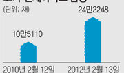 전월세 거래량이 지난해 11월 이후 3개월째 줄어들었다. 학군 수요 감소에 설 연휴 기간에 거래가 중단된 탓이다. 국토해양부는 전월세 거래정보 시스템을 통해 지난달 전월세 거래량을 집계한 결과 전국 기준 총 8만3183건으로 전월(10만1768건) 대비 18.3% 줄었다고 26일 밝혔다. 이는 전년 동월(8만8384건)보다도 5.9% 감소한 것이다. 수도권은 5만2594건으로 전월(6만5451건)보다 19.6%가, 전년 동월(5만5899건)과 비교하면 5.9%가 줄었다. 특히 서울에서는 강남 3구(―10.5%)와 양천(―20.3%), 노원(―8.8%) 등지의 감소 폭이 컸다. 지방에서도 3만589건으로 전월(3만6317건, ―15.8%)은 물론이고 전년 동월(3만2485건, ―5.8%)과 비교해서도 줄어들었다. 이에 대해 국토부는 강남 3구 등 주요 학군지역의 수요가 떨어진 데다 설 연휴 영향 등으로 거래가 둔화됐기 때문이라고 풀이했다. 계약 유형별로는 전체 주택의 경우 전세가 5만3700건으로 65%를 차지했고, 월세(보증부 월세)가 2만9500건으로 35%였다. 아파트는 전세가 3만800건으로 75%, 월세가 1만1400건으로 25% 수준이다. 거래가 줄어들면서 강남지역을 중심으로 실거래가도 약세를 면하지 못했다. 강남구 대치동 은마아파트 전용 84m²는 지난해 말 3억1200만 원에서 올해 1월에는 2억8100만 원으로 3000만 원가량 하락했다. 또 반포 미도아파트 전용 84m²도 지난해 12월 3억2300만 원에서 올해 1월에는 2억9800만 원으로 2500만 원이 떨어진 상태에서 시세가 형성됐다.황재성 기자 jsonhng@donga.com}