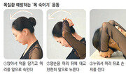 ‘100세 건강을 위한 게으른 스트레칭’의 이번 주제는 목 스트레칭의 마지막 회인 ‘목 숙이기’다. 흔히 스마트폰을 보기 위해 ‘거북목’처럼 목을 숙이는 것과는 전혀 다르다. 좋지 않은 자세로 목을 계속 숙이고 있으면 통증이 온다. 목 숙이기 스트레칭은 목 전체를 구부려 목과 등을 이어주는 근육을 이완시키는 운동이다. 이를 통해 만성두통이나 만성어깨통증을 완화시킬 수 있다. 게으른 스트레칭법은 각 분야에서 오랫동안 치료를 해온 경험 많은 전문의의 조언을 바탕으로 만들었다. 목 숙이기 스트레칭은 우리들병원 배준석 원장의 조언을 받았다. 30년 경력의 클래식 발레 전문가인 양지요 발레드파리 원장이 스트레칭 모델로 참여했다. 동영상 촬영은 라이나전성기재단이 진행했다. 목 숙이기의 첫 번째 동작은 ①앉아서 턱을 당기고 머리를 앞으로 숙인다. ②양손을 머리 뒤에 대고 천천히 앞으로 꾹 누른다. 이때 턱은 꼭 당기도록 한다. 목 뒤쪽 근육이 스트레칭 되는 느낌으로 천천히 쭉 숙이도록 한다. 이 동작을 10회 반복하고 마지막엔 10초 정도 유지한다. 목 숙이기의 두 번째 동작은 ③바로 누운 상태에서 머리 뒤로 깍지를 낀다. ④팔꿈치를 앞으로 모으는 느낌으로 머리를 당긴다. 이때도 턱은 꼭 당기도록 한다. 마찬가지로 이 동작을 10회 반복하고 마지막엔 10초 정도 유지한다.이진한 의학전문기자·의사 likeday@donga.com}