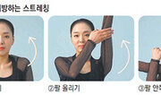 ‘100세 건강을 위한 게으른 스트레칭’ 이번 편은 앉아서 누구나 따라할 수 있는 어깨 스트레칭이다. 어깨 관절은 근육과 연결된 힘줄이 뼈와 뼈 사이를 지나가기 때문에 어깨 힘줄이 손상받기 쉽다. 이 때문에 대표적 어깨 질환인 오십견, 회전근개질환, 석회성건염 등이 잘 생긴다. 이 질환들은 평소 어깨 스트레칭을 통해 예방이 가능하다. 게으른 스트레칭은 각 분야에서 오랫동안 치료한 전문의의 도움으로 만들고 있다. 어깨 스트레칭은 날개병원 이태연 원장의 조언을 받았다. 30년 경력의 클래식 발레 전문가인 양지요 발레드파리 원장이 모델로 참여했다. 동영상 촬영은 라이나전성기재단이 진행했다. 먼저 ①어깨 으쓱하기 동작이다. 어깨 근육을 전반적으로 풀어주는 동작이다. 어깨를 귀에 붙이는 느낌으로 위로 끌어올린다. 그대로 1∼2초 멈췄다가 처음 자세로 돌아간다. 하루 2, 3회 각 5분간 운동한다. 두 번째는 ②팔 올리기 동작. 한쪽 팔로 반대쪽 팔꿈치를 잡고 서서히 올린다. 최대로 올려준 뒤 멈추고 5초간 유지한다. 15회씩 하루에 3회 정도 한다. 다음은 ③팔 안쪽으로 모으기. 한쪽 팔로 반대쪽 팔꿈치 부위를 잡고 안쪽으로 서서히 당긴다. 마찬가지로 5초간 유지한다. 15회씩 하루에 3회 실시한다. ④팔 바깥쪽으로 벌리기 동작. 깍지 낀 두 손을 머리 뒤쪽에 갖다댄 뒤 양쪽 어깨를 펴는 느낌으로 팔을 벌린다. 5초간 유지하며 15회씩 하루 2회 실시한다. 마지막으로 ⑤열중쉬어 자세. 열중쉬어 자세에서 손등을 몸에 밀착시킨다. 천천히 허리까지 한쪽 팔로 반대쪽 팔을 잡아당긴다. 근육이 땅겨지는 느낌이 들 때까지 당긴 뒤 10초간 유지한다. 하루 3회씩 3번 실시한다. 이진한 의학전문기자·의사 likeday@donga.com}