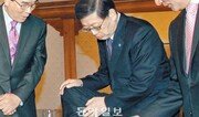 김황식 국무총리(가운데)가 25일 서울 종로구 삼청동 총리공관에서 학력 차별을 극복한 기업인 등을 초청해 가진 오찬 간담회에서 “아침에 추워서 내복을 입었다”며 바지를 걷어 내복을 보여주고 있다. 김 총리는 “학력이 아닌 능력에 따라 일할 기회를 균등하게 보장받고, 능력·실적에 따라 대우받는 사회를 만드는 것이 공생발전의 핵심”이라고 말했다. 김미옥 기자 salt@donga.com}