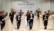 우리다문화장학재단은 7일 오전 서울 중구 회현동 우리금융그룹 본사 4층 대강당에서 ‘다문화가족 합동결혼식’(사진)을 개최했다. 경제적 어려움으로 그동안 결혼식을 올리지 못했던 다문화가정 부부 10쌍이 이날 식을 올렸다. 이순우 우리금융그룹 회장 겸 우리다문화장학재단 이사장은 이날 합동결혼식의 주례를 맡았다.}