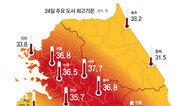 2일 전국 곳곳이 역대 가장 ‘뜨거운 아침’을 맞았다. 이날 서울의 아침 최저기온은 30.3도로 1907년 관측 이래 111년 만에 가장 높은 최저기온을 기록했다. 전날 한낮 최고기온이 39.6도를 나타내 역대 최고기온 기록을 새로 쓴 서울은 하루 만에 ‘초열대야’(전날 오후 6시∼당일 오전 9시 최저기온이 30도 이상)로 또 하나의 신기록을 세웠다. 이번 기록은 2013년 8월 8일 강원 강릉이 기록한 30.9도에 이어 두 번째로 높은 것이다. 2일 인천(29.1도)과 경기 동두천(26.9도) 등도 역대 가장 높은 최저기온 기록을 세웠다. 이날 한낮 기온은 기상청 예보보다 1, 2도가량 떨어졌다. 구름이 많이 낀 데다 화염에 가까운 열기를 내뿜는 동풍이 다소 주춤해진 결과다. 다만 자동관측기기(AWS)로 측정한 비공식 최고기온이 가장 높은 곳은 경북 영천시 신녕면으로 40.2도였다. 기상청은 최소 12일까지 전국에 비가 오지 않는 가운데 폭염이 지속될 것으로 전망했다.이미지 기자 image@donga.com}