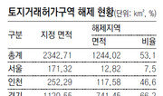 전국 토지거래허가구역의 절반 이상이 풀려난다. 이에 따라 해당 지역에서는 관할 지역 시군구청장의 사전허가 없이 자유롭게 토지를 사고팔 수 있고, 허가받은 용도가 아니더라도 토지를 개발할 수 있다. 또 이번 조치로 현 정부 출범 이후 토지거래허가구역 면적의 93%가 해제된 셈이어서 토지거래허가제가 ‘유명무실’해졌다는 평가도 나온다. 국토해양부는 중앙도시계획위원회 심의를 거쳐 31일자로 전국의 토지거래허가구역 1244km²를 허가구역에서 해제하기로 했다고 30일 밝혔다. 김재정 국토부 토지정책관은 “토지거래허가구역은 땅값이 크게 오르는 시점에 나타나는 투기수요를 억제하기 위해 지정된 것”이라며 “최근 3년간 지가변동률이 연평균 1% 내외로 안정돼 있고 투기 우려도 적어 해제를 결정했다”고 설명했다. 대상 지역은 수도권의 녹지 및 비도시지역과 수도권 및 광역권의 개발제한구역에서 토지거래허가구역으로 지정돼 있는 2342km²의 절반(53.1%)을 조금 웃돈다. 지역별로는 수도권에서 허가구역으로 지정된 면적의 56.5%가 풀렸다. 특히 경기도의 해제 면적이 넓은데, 용인·수원·부천·성남·안양 등지에서 지정면적의 66.2%인 741km²가 풀려났다. 인천도 전체의 절반(46.6%) 가까운 117.58km²가 해제됐다. 서울은 해제면적이 전체 허가구역의 7.5%(12.82km²)에 머물렀다. 지방에서는 대구시가 해제비율로 가장 큰 92.9%(142.97km²)가 해제됐고, 울산(비율 89.5%·면적 107.44km²) 경남(36.7%·110.94km²) 등도 대거 풀렸다. 반면 개발사업이 진행 중인 곳이나 예정지역으로 지가 급등 불안이 있는 곳, 투기 우려로 기타 지자체가 재지정을 요청한 지역은 해제 대상에서 제외됐다. 대표적인 곳이 화성 동탄2, 수원 광교, 김포 한강, 파주 운정신도시 등 신도시 인근 지역으로 주변 지역 지가에 미치는 영향이 클 것으로 예상돼 해제 대상에서 제외됐다. 또 지난해 지가 변동률이 3% 이상인 경기 하남시(5.65%) 시흥시(3.53%) 등지와 수도권 그린벨트로서 개발 여건이 양호한 지역 등도 허가구역으로 남았다. 국토부는 이번에 해제된 지역을 포함해 토지시장의 움직임을 지속적으로 관찰하고, 5월에 추가 해제나 재조정 여부를 결정할 계획이다. 허가구역에 대한 지역별 상세한 내용과 필지별 해제 여부는 토지가 있는 지역 시군구의 지적과나 민원봉사실에서 확인할 수 있다.황재성 기자 jsonhng@donga.com}