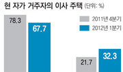 수도권 자가 보유자 10명 중 3명은 앞으로 이사한다면 전월세로 옮기겠다고 대답했다. 또 전월세 거주자 10명 중 6명 이상은 전월세로 남겠다고 밝혔다. 부동산 경기 침체가 장기화하면서 자가 보유를 꺼리는 수요자가 늘고 있음을 보여준다. 이 같은 결과는 부동산114가 분기마다 수도권 거주자를 대상으로 실시하는 ‘주택소비자 인식 설문조사’에서 드러났다. 847명을 대상으로 실시한 이번 조사에서 자가 보유자의 32.3%가 ‘전월세로 이사하고 싶다’고 대답했다. 전 분기(21.7%)보다 10%포인트 이상 늘어났다. 전월세에 살면서 전월세로 옮기겠다는 응답자도 전 분기(56.1%)보다 9.5%포인트 증가했다. 부동산114 김규정 리서치센터장은 “집값 하락에 대한 우려로 주택 수요자들이 임대시장에 머무르려는 경향이 늘어난 것으로 보인다”고 분석했다. 실제로 이번 조사에서 미래 가격이 오를 것인가에 대한 ‘가격전망지수’가 111.1에 머물며 지난해 1분기(133.9) 이후 계속된 하락세를 이어갔다. 현재 가격 수준을 보여주는 ‘가격평가지수’도 95.8로 전 분기(97.6)보다 떨어졌다. 한편 6개월 이내 주택 구입 의사를 밝힌 응답자의 절반가량이 ‘주택 구입비의 30% 범위에서 대출을 받을 계획’이라고 밝혔고, 대출을 포함한 투자 규모는 ‘2억∼5억 원 미만’이라는 응답자가 40.5%로 가장 많았다.황재성 기자 jsonhng@donga.com}