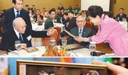 박근혜 대통령이 18일(현지 시간) 콜롬비아 수도 보고타에서 열린 6·25전쟁 참전용사 가족 초청 간담회에서 프란시스코 엠 카이세도 전 소위(앞줄 왼쪽)에게 인사하며 액자를 건네받고 있다. 1975년 한국 정부의 초청으로 방한해 박정희 전 대통령과 박 대통령을 만났던 카이세도 전 소위가 당시 신문기사와 사진(아래 사진)을 담아 선물한 것이다. 후안 마누엘 산토스 콜롬비아 대통령과 만나 자유무역협정(FTA) 조기 발효 등 협력 촉진 방안을 논의한 박 대통령은 20일 오얀타 우말라 페루 대통령과 정상회담을 한다. 보고타=신원건 기자 laputa@donga.com}