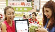 롯데마트는 17년 동안 이어 오던 종이쿠폰 발행을 중단하고 이를 스마트폰 응용프로그램(앱)인 ‘롯데마트 M쿠폰’으로 대체한다고 3일 밝혔다. 고객이 앱 화면의 바코드를 계산대에서 제시하면 가격 할인과 멤버십 포인트 적립 등의 혜택을 받을 수 있다. 신원건 기자 laputa@donga.com}
