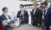 문재인 대통령은 30일 “2025년까지 전기차, 수소차 등 그린 모빌리티에 20조 원 이상 투자할 계획”이라고 말했다. 문 대통령은 이 자리에서 “노사 협력과 미래 비전에서도 1등 기업”이라며 현대자동차의 고용안정과 노사협력 성과를 치켜세웠다. 문 대통령은 이날 친환경 미래차 개발 현장인 현대차 울산공장을 방문해 “세계적인 치열한 경쟁 속에서 (향후) 5년이 미래차 시장을 선도하는 골든타임이 될 것”이라며 이같이 말했다. 현대차 울산공장은 세계 최초 수소차 ‘투싼’과 국내 최초 양산형 전기트럭인 ‘포터’ 등을 생산했다. 현대차는 이날 세계 최초로 개발한 ‘전기차 전용플랫폼(E-GMP)’을 공개했다. 현대차의 수소차인 ‘넥쏘’를 타고 행사장에 등장한 문 대통령은 현대차 공장 도착 직후 울산5공장을 방문해 친환경 미래차 산업 육성 전략에 대한 송철호 울산시장의 브리핑을 들었다. 송 시장이 “미래차 전환에 대한 노사민정 사회적 합의를 이미 상당 부분 이뤄냈다”며 “최근 현대차 노조가 사상 최초 무분규로 임금을 동결하는 단체교섭에 합의했다”고 하자 문 대통령은 정의선 현대차그룹 회장을 보고 웃으면서 “우리 회장님”이라며 박수를 쳤다. 정 회장이 그동안 울산 현대차 공장을 잘 경영해 왔다고 격려하며 회장 취임을 축하하는 의미로 보인다. 정 회장은 문 대통령과 함께 넥쏘 생산라인 공장 내부로 이동하면서 “너무 영광이다”라고 화답했다. 문 대통령은 공장을 둘러보며 정 회장에게 “수소연료전지 위치가 어딘가” “한 번 충전하면 얼마를 주행할 수 있는가” 등을 물었다. 이어 문 대통령은 미래차 산업 토크콘서트에 나서 “최초의 국산 고유 모델 ‘포니’가 여기서 태어났고, 지금 제가 타고 있는 달리는 공기청정기 수소차 ‘넥쏘’가 만들어진 곳”이라며 “새로운 역사를 쓴 현대차와 구매자들께 축하드린다”고 했다. 이어 “글로벌 자동차 기업들이 전기차 개발에 집중할 때 현대차는 전기차와 함께 수소차 개발에도 과감히 투자하여 세계 최초로 수소차를 생산했고, 현재 압도적 판매 1위를 기록하고 있다”며 “현대차 울산공장은 혁신에서 1등 기업이지만 코로나 위기를 극복하는 노력에서도 1등 기업이고, 노사 협력과 미래 비전에서도 1등 기업”이라고 격려했다. 그러면서 “현대차가 새로운 역사를 썼다”며 “오늘은 세계 최초로 수소차 판매 1만 대를 돌파하고 전기상용차 판매 역시 1만 대를 넘어선 날”이라고 말했다. 문 대통령은 “보조금과 세제 혜택, 연료비 부담을 낮춰 가격경쟁력을 확보하고, 환경 개선 효과가 큰 트럭과 버스 같은 상용차에 더 많은 보조금을 지급하겠다”고도 밝혔다. 환경부는 내년부터 일정 가격 이상의 전기차에는 보조금을 지급하지 않기로 했다. 업계에서는 상한선이 6000만∼7000만 원 수준이 될 것으로 보고 있다. 그동안은 가격 제한 없이 전기차만 사면 무조건 보조금을 지급했는데, 앞으로는 차등적으로 보조금을 지급해 전기차 가격 인하를 유도하겠다는 것이다. 박효목 tree624@donga.com·사지원 기자}