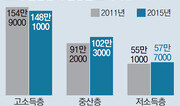 서울에 거주하는 김모 씨(42·여)는 두 자녀의 학원비를 벌기 위해 5년째 ‘야쿠르트 아줌마’로 일하고 있다. 아이를 낳고 직장을 그만뒀지만 첫째가 중학교에 입학하면서 다시 일을 시작했다. 그의 월수입은 200여만 원. 고교 1학년, 초교 5학년 자녀에게 드는 사교육비에 80만 원가량을 쓰고 나머지는 저축하고 있다. 김 씨는 “첫째가 대학에 입학하고 둘째가 고등학생이 되면 부담이 더 커질 것 같아 여윳돈을 쓰지 않고 모아둔다”고 말했다. 김 씨처럼 자녀 교육비에 쓰려고 취업 전선에 나서는 주부가 적지 않다. 한 대형마트 관계자는 “마트 캐셔 중 상당수가 자녀 학원비를 벌려고 재취업한 중년 여성들이다”라고 소개했다. 취업이라도 하면 그나마 낫다. 교육비를 대느라 빚을 내다가 빈곤층으로 전락하는 ‘에듀푸어(edupoor·교육 빈곤층)’도 상당수다. 3일 현대경제연구원에 따르면 2015년 말 기준으로 에듀푸어(도시에 거주하는 2인 이상 가구 중 빚이 있고 적자 상태인데도 평균 이상 교육비를 지출하는 가구)는 60만6000가구로 추정됐다. 이는 자녀 교육비 지출이 있는 614만6000가구의 9.9%에 해당한다. 약 222만9000명이 에듀푸어 가구에 속해 있다는 뜻이다. 이들 에듀퓨어 가구의 수입은 전체 가구 평균보다 28% 적었지만 교육비로 85% 이상 더 투자했다. 월 361만8000원을 벌어 소득의 26%인 94만6000원을 교육비로 썼고, 이로 인해 월평균 65만9000원의 적자를 냈다. 에듀푸어 가구주는 대졸 이상이 57.5%(34만9000가구)로 가장 많았다. 높은 수준의 교육을 받은 부모일수록 자녀 교육에 대한 기대치가 높아 교육 빈곤층이 될 가능성이 크다는 의미로 풀이된다. 소득수준별로 교육 빈곤층이 지출하는 월평균 교육비는 크게는 3배 가까이로 차이가 났다. 고소득층은 월평균 148만1000원을 자녀 교육에 썼고, 중산층은 102만3000원을 썼다. 저소득층은 57만7000원을 교육에 지출했다.강유현 기자 yhkang@donga.com 동아일보-KDI 공동기획}