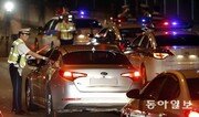 경찰이 14일 서울 마포구 양화대교 북단 교차로에서 음주운전 단속을 하고 있다. 경찰청은 이날 오후 9시부터 11시까지 지구대, 파출소, 기동대 소속 경찰을 투입해 전국적으로 음주운전 일제 단속을 벌였다. 다음 주부터는 지방경찰청 또는 경찰서별로 주 1회 불시 음주단속을 진행하고 장소를 수시로 바꾸는 이동식 단속도 벌일 예정이다. 양회성 기자 yohan@donga.com}