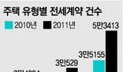 2010년 이후 지속되고 있는 아파트 전세금 상승세로 다세대·연립주택이나 단독주택으로 눈을 돌리는 세입자들이 늘고 있다. 26일 서울부동산정보광장에 따르면 지난해 하반기 서울시내 다세대·연립주택의 전세계약 건수는 2만4024건으로 2010년의 같은 기간(1만2415건)보다 두 배가량 많았다. 단독·다가구주택 전세계약도 2010년 하반기 1만9176건에서 2011년 하반기에는 3만529건으로 59% 늘었다. 같은 기간 아파트 전세계약 건수(2010년 3만5155건→2011년 5만3413건)는 52% 증가했다. 전문가들은 이에 대해 다세대 등의 전세금이 아파트보다는 낮게 형성돼 있어 아파트에서 밀려난 전세 수요자들을 흡수하는 것으로 분석했다. 이런 추세를 반영하듯 아파트 전세금이 가파르게 상승하면서 연립주택과 단독주택 전세금도 크게 오른 것으로 나타났다. 부동산포털 닥터아파트에 따르면 지난해 서울 아파트 전세금은 13.4% 올랐고, 연립과 단독주택의 전세금도 각각 8.4%와 6.07% 상승했다. 한편 국토해양부는 지난해 12월 전월세 거래정보시스템에 등록된 주택 전월세 거래량(확정일자 기준)을 조사한 결과 10만1768건으로 전월(10만6789건)보다 4.7% 감소했다고 26일 밝혔다. 지역별로 수도권이 6만5500건으로 전월보다 8.2% 줄었지만 지방은 3만6300건으로 전월보다 2.3% 늘었다. 또 작년 한 해 동안 거래된 전월세 물량은 모두 132만1200건이었고, 월별로는 봄 이사철인 3월에 가장 많은 14만1600건이 거래된 것으로 집계됐다.황재성 기자 jsonhng@donga.com}