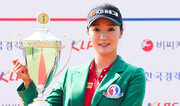 최근 한국여자프로골프(KLPGA)투어는 ‘지현’만이 우승할 수 있다는 우스갯소리가 있다. 지난달 28일 이지현(문영그룹)이 E1 채리티오픈에서 우승한 뒤 바로 다음 주 김지현(롯데)이 롯데칸타타오픈에서 정상에 올랐다. 그 후에는 동명이인 김지현(한화)이 2주 연속 트로피를 차지하며 대세로 떠올랐다. 이번에는 오지현(KB금융그룹)이 비씨카드 한경레이디스컵에서 대회 2연패에 성공했다. 지현이란 이름을 가진 선수가 5주 연속 트로피에 입을 맞춘 것이다. 오지현은 25일 경기 안산 아일랜드CC(파72)에서 열린 마지막 4라운드에서 보기 없이 버디 3개를 낚아 최종 합계 16언더파로 김지영 김민선 장은수 등을 2타 차로 제쳤다. 최근 3년 동안 해마다 1승씩 올리며 통산 세 번째 우승을 거둔 오지현은 우승 상금 1억4000만 원을 받았다. 오지현은 지난해 이 대회에서 선두였던 여고생 성은정이 마지막 홀에서 더블보기를 하면서 행운의 연장전에 들어간 뒤 우승한 바 있다. 그래서인지 오지현은 “아일랜드 골프장에서는 좋은 기억이 있다. 오늘 전반에 힘들었는데 끝까지 포기하지 않았다”고 말했다. IQ가 143인 오지현은 “취미인 철인3종 경기도 멀리하고 늘 캐디로 고생해 주시는 아버지에게 감사드린다. 오늘 경기 도중 카트가 고장 나 아버지가 직접 가방을 메고 다니느라 허리가 아프다고 하셨다. 올해는 꼭 2승 이상을 올려 다승 갈증을 풀겠다”고 소감을 밝혔다. 2008년 서희경 이후 9년 만에 3주 연속 우승을 노렸던 김지현은 1타를 잃고 공동 10위(8언더파)로 마쳤다. 김종석 기자 kjs0123@donga.com}