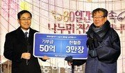 현대자동차는 24일 서울 경복궁 흥례문 야외무대에서 ‘사랑나눔 콘서트’를 갖고 고객들이 기부한 후원금 50억 원과 헌혈증 3만 장을 어린이재단과 한국백혈병소아암협회에 각각 기증했다고 26일 밝혔다. 이 콘서트는 현대차가 7월부터 12월까지 어린이재단, 한국백혈병소아암협회와 함께 진행한 ‘사랑나눔 수호천사 캠페인’의 성공적 종료를 축하하기 위한 것이다. 사랑나눔 수호천사 캠페인은 현대차 지정계좌로 5만 원 이상 후원금을 넣거나 헌혈증을 기증한 고객에게 현대차 구매 시 10만 원 할인을 제공하는 활동이다. 현대차는 10월에 1차로 80억 원의 후원금과 5만 장의 헌혈증을 기증했다. 콘서트에는 인기가수 인순이 태진아 마야 씨를 비롯해 성악가 김동규 씨, 리틀앤젤스 합창단 등이 함께했고 탤런트 최불암 박상원 씨, 축구 감독 홍명보 씨 등이 캠페인의 결과를 소개했다. 김현지 기자 nuk@donga.com}