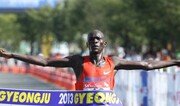 조엘 키무레르 켐보이(23·케냐)가 13일 열린 동아일보 2013 경주국제마라톤에서 생애 첫 우승을 차지했다. 켐보이는 이날 경주시민운동장 앞에서 출발해 신라공고사거리를 반환점으로 돌아오는 42.195km의 레이스에서 2시간7분48초의 개인 최고 기록으로 결승선을 가장 먼저 지났다. 이번 대회 참가 선수 중 개인 기록 순위가 10위였던 켐보이는 11일 열린 주요 선수 기자회견에도 초대받지 못했다. 하프코스를 주로 뛰었던 켐보이는 2011년 4월에야 풀코스를 처음으로 완주했고, 이번 대회가 세 번째 풀코스 도전이었을 만큼 경험이 적어 관심을 끌지 못했다. 하지만 그는 30km 지점부터 이번 대회 우승 후보로 꼽혔던 조너선 키플리모 마이요(25·케냐)와 선두 경쟁을 벌이다 35km를 지나면서 마이요를 따돌리고 끝까지 독주했다. 마이요는 보니파세 음부비 무에마(27·케냐)에게도 추격을 허용해 3위에 그쳤다. 아무도 그를 주목하지 않았지만 켐보이는 "이번 대회를 앞두고 몸 상태가 너무 좋았다. 1위가 목표였고 충분히 우승할 수 있다는 자신감도 있었다"고 말했다. 그는 "기온이 좀 더 낮았더라면 대회 기록(2시간6분46초)도 깰 수 있었을 것이다. 평탄한 코스가 아주 마음에 든다"며 내년에도 경주에서 뛰고 싶어 했다. 이날 출발 시각인 오전 8시에는 섭씨 11도로 선선했지만 켐보이가 골인할 무렵에는 20도로 달리기에는 다소 더웠다. 지난해 2위로 우승을 놓쳤던 무에마는 2시간9분6초를 기록하며 2년 연속 2위에 그쳤다. 무에마는 4월 열린 대구국제마라톤에서도 2위를 하는 등 2010년부터 해마다 한국을 찾고 있지만 아직 우승과 인연을 맺지 못했다. 지난해 1위부터 6위까지를 독차지했던 마라톤 강국 케냐 군단은 올해도 1~6위를 휩쓸었다. 국내 부문 남녀부에서는 오서진(25·국민체육진흥공단)과 최보라(22·경주시청)가 각각 대회 2년 연속 우승을 차지했다. 국내 남자부 1~3위를 독차지한 국민체육진흥공단 황영조 감독은 지도자상을 받았다. 올해 1월 창단한 경주시청에 둥지를 새로 튼 최보라는 제인모 감독에게 지도자상을 선물했다.경주=이종석기자 wing@donga.com}