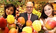11일 서울 중구 소공로 신세계백화점 본점에서 하이메 포마레다 주한 페루대사(가운데)가 페루산 애플망고를 선보이고 있다. 신세계백화점은 본점과 강남점, 경기점, 센텀시티점 등에서 국내 처음으로 페루산 애플망고를 판매한다. 양회성 기자 yohan@donga.com}
