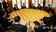 황교안 국무총리(마이크를 든 사람)가 10일 서울 종로구 총리공관에서 열린 고위 당정청 회의에서 발언하고 있다. 이날 정부는 북한의 미사일 도발과 관련해 개성공단 가동을 전면 중단한다고 밝혔다. 황 총리부터 원탁 시계방향으로 이준식 사회부총리, 새누리당 조원진 원내수석부대표, 원유철 원내대표, 김무성 대표, 김정훈 정책위의장, 안종범 대통령경제수석비서관, 현정택 정책조정수석, 이병기 대통령비서실장, 현기환 정무수석, 이석준 국무조정실장, 유일호 경제부총리. 양회성 기자 yohan@donga.com}