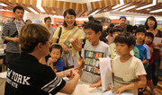 “센세이, 아리가토 고자이마스(선생님, 감사합니다).” 일본 도쿄 라라포트 쇼핑몰에 자리한 기노쿠니야 서점에는 20일 한껏 신난 아이들의 목소리가 울려 퍼졌다. 일본에서 530만 권 넘게 판매되며 큰 인기를 모은 과학 만화책 ‘살아남기’ 시리즈의 한현동 그림작가(39)가 사인회에서 주인공인 지오의 얼굴을 한 명 한 명씩 책에 그려 주고 있었다. 한 여자아이는 양손을 활짝 벌린 채 달려와 한 작가의 두 손을 와락 잡기도 했다. 이달 초 일본에서 출간된 ‘물 부족에서 살아남기’는 출판 도매상인 도한이 집계하는 주간 베스트셀러 순위에서 지난주 종합 5위까지 올랐다. 한국 출판물이 일본에서 이처럼 사랑받는 경우는 드물다. 미래엔 출판사의 아이세움에서 2001년 출간해 지금까지 51권이 나온 이 시리즈는 미국, 대만, 태국 등 7개국에 수출됐다. 한국(1100만 권)을 포함해 국내외에서 2800여만 권이 판매됐는데, 일본은 중국(800만 권)에 이어 해외에서 두 번째로 많이 팔린 나라다. ○ 모험하다 보면 과학 지식이 쏙쏙 “선생님은 지오를 그릴 때 눈을 가장 먼저 그려요. 이렇게요∼.” 사인회에 앞서 열린 그림 교실에서 한 작가가 화이트보드에 지오의 눈을 그리자 “와!”라는 탄성이 터져 나왔다. 그림 교실 바로 옆에는 ‘살아남기’ 시리즈만 모아 놓은 책장이 2개 있었다. 일본 출판을 담당한 아사히신문출판의 나카무라 마사시 서적본부장은 “일본의 대형 서점 대부분에는 ‘살아남기’ 시리즈 서가가 별도로 있다”고 말했다. 이 시리즈는 사건과 위기가 이어지며 문제를 해결해 나가는 흥미진진한 이야기에 과학 지식이 자연스럽게 녹아들어 아이들을 사로잡았다는 분석이 나온다. 이웃집 친구 같은 친근한 캐릭터와 역동적인 그림, 익살스러운 표정과 행동도 한몫한다. 히라노 가즈키 군(10)은 “모험이 재미있고, 실수를 하지만 멋진 면도 많은 지오가 좋아 새 책이 나오면 바로 사서 본다. 20권 넘게 보다 보니 흥미가 없던 과학도 잘 알게 됐다”고 말했다. 20권 가까이 읽었다는 미야케 미라이 양(9)은 “‘인체에서 살아남기’가 제일 재미있다. 지오는 평상시는 잠꾸러기인데 위험이 닥치면 실력을 발휘해서 좋다”며 웃었다. ○ 일본 학습 만화 시장 개척 이날 취재를 나온 출판문화 전문 신문인 분카쓰신(文化通信) 호시노 와타루 편집장은 “2008년 일본에 처음 출간됐을 때 책을 보니 아이들을 설레게 하는 요소가 많고 구성도 탄탄해 히트칠 것이라 직감했다”고 말했다. ‘살아남기’ 시리즈는 일본에서 과학 만화라는 새로운 시장을 개척했다. 한자, 세계사 등 다양한 분야의 만화가 쏟아지는 한국과는 달리 일본은 만화 강국이지만 학습 만화로는 일본 역사를 다룬 책 정도가 있다고 한다. 아오키 야스유키 아사히신문출판 사장은 “출판계가 불황인데 ‘살아남기’ 시리즈는 최근 3, 4년간 해마다 100만 권씩 판매돼 놀라울 뿐이다”고 말했다. ‘물 부족…’은 초판만 9만 권을 찍었다. 대부분의 일본 초등학교 도서관에는 ‘살아남기’ 시리즈가 비치돼 있다. 하지만 예약자가 많아 곧바로 빌려 보기는 쉽지 않다고 한다. 일본 초등학교에서는 수업 전 5∼10분 학생들이 자유롭게 원하는 책을 읽는 시간이 있다. 일반 만화책은 안 되지만 ‘살아남기’ 시리즈는 허용하고 있다. 나카무라 본부장은 “해마다 이 시간에 많이 읽은 책 순위를 발표하는데 ‘살아남기’ 시리즈는 늘 2, 3위에 오른다”고 말했다. 이 시리즈가 인기를 끌자 판형과 내용을 그대로 모방한 책까지 나오고 있지만 별로 주목받지 못했다. 한 작가는 “일본 만화를 보며 자랐는데, 내 작품이 일본에서 이토록 사랑받는 걸 보니 가슴이 벅차다”고 말했다. 도쿄=손효림 기자 aryssong@donga.com}