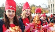 3일 서울 중구 서울광장에서 열린 ‘제4회 서울김장문화제’ 개막식에 참가한 외국인들이 직접 담근 김장김치를 들고 환하게 웃고 있다. 5일까지 열리는 이번 행사에서 담근 김치 120t은 소외계층에 전달된다. 김재명 기자 base@donga.com}