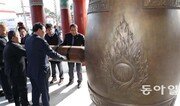 2018 평창 겨울올림픽을 앞두고 제작한 대종 종각 준공 및 기념 타종행사가 15일 강원 평창군청 앞 광장에서 열렸다. 평창=김재명 기자 base@donga.com}