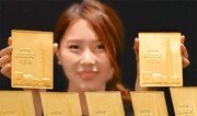 16일 서울 중구 롯데백화점 본점에서 롯데월드타워가 새겨진 골드바를 선보이고 있다. 롯데 유통 사업부문(BU)은 17일부터 21일까지 구매 고객 중 7명을 추첨해 2kg(1등) 1억 원 상당 골드바 등 총 3억 원 상당 골드바를 증정하는 ‘황금 월드타워’ 경품행사를 진행한다. 김재명 기자 base@donga.com}