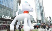 2018년 개의 해를 맞아 서울 강남구 코엑스 동측 광장에 높이 12m 초대형 ‘도기독(Doggy Dog)’ 조형물이 설치됐다. 팝아티스트 이동기 작가 작품이다. 20일 ‘도기독’ 조형물 주변으로 관람객이 지나고 있다. 김재명 기자 base@donga.com}