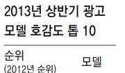 ‘왕자’ 이승기, ‘샛별’ 수지, ‘돌아온 블루칩’ 전지현…. 광고효과 분석업체인 한국CM전략연구소가 1월부터 6월까지 매달 수도권 10∼50대 남녀 1200명을 대상으로 CF 모델의 호감도를 조사해 종합한 결과 이승기가 올 상반기 가장 호감이 가는 광고 모델로 꼽혔다. 이승기는 2010, 2011년에도 1위를 차지했다. 경원식 한국CM전략연구소장은 “또래 20대 배우들이 드라마나 영화계에서 활동하는 동안 이승기는 예능 프로그램에 꾸준히 출연해 인간적인 모습을 보여줬다”고 설명했다. 2위는 피겨여왕 김연아가 차지했다. 김연아는 올해 3월 캐나다에서 열린 세계선수권대회에서 우승한 후 호감도가 올랐다. 3위는 송중기, 4위는 수지였다. 송중기는 지난해 말 드라마 ‘세상 어디에도 없는 착한남자’와 영화 ‘늑대소년’의 성공 이후 꾸준히 호감도가 상승했다. 수지의 상승세는 인상적이다. 그는 지난해 광고 모델 호감도 순위 30위에서 올해 6월에는 1위로 뛰어올랐다. 5위는 김태희, 6위는 원빈, 7위는 현빈, 8위는 전지현, 9위는 유재석, 10위는 조인성이었다. 지난해 12월 군에서 제대한 현빈은 올 상반기 여러 CF에 출연하며 지난해(39위)보다 32계단 상승했다. 전지현도 최근 출연한 영화 ‘도둑들’과 ‘베를린’이 성공하며 CF 여왕 자리를 넘보고 있다. 지난해 22위였던 전지현은 올해 6월에는 수지에 이어 2위를 차지했다.구가인 기자 comedy9@donga.com}