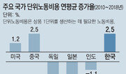 국내 기업의 높은 노동비용이 리쇼어링(reshoring·기업의 국내 복귀) 장벽으로 작용한다는 분석이 나왔다. 최근 들어 1인당 노동비용이 노동생산성에 비해 2배 빠르게 오른 탓에 경쟁력이 떨어졌다는 주장이다. 1일 전국경제인연합회 산하 한국경제연구원 분석에 따르면, 2010년에서 2018년 중 국내 업체의 단위노동비용은 연평균 2.5% 증가한 반면, 국내 기업이 많이 진출한 미국, 중국, 독일 등 주요 10개 국가의 단위노동비용은 연평균 0.8% 감소했다고 밝혔다. 단위노동비용은 상품 1단위를 생산하는 데 필요한 노동비용으로, 단위노동비용 증가는 1인당 노동비용이 1인당 노동생산성보다 더 올랐다는 의미다. 높을수록 제조원가 경쟁력은 떨어진다는 의미다. 한경연 분석 결과 2010∼2018년 국내 업체들의 1인당 노동비용 증가율은 연평균 5.2%로, 1인당 노동생산성 증가율 2.6%를 크게 웃돌았다. 반면 주요 10개 국가는 평균적으로 1인당 노동생산성이 연 3.9% 증가하고 1인당 노동비용은 연 3.0% 증가해 생산성이 개선됐다. 한경연 관계자는 “기업 리쇼어링을 위해선 노동비용 인상을 자제하고 생산성을 높여 제조원가 비교 우위를 확보하는 게 우선”이라고 주장했다.임현석 기자 lhs@donga.com}