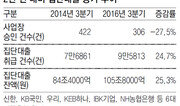 올해 3분기(7∼9월) 시중은행의 아파트 집단대출 건수가 2년 전 같은 기간에 비해 약 25% 늘어난 것으로 나타났다. 부동산 시장이 꺾일 것을 우려해 건설사들이 ‘밀어내기 분양’을 한 결과로 풀이된다. 이 같은 사실은 금융감독원이 최운열 더불어민주당 의원실에 제출한 6대 시중은행(신한, KB국민, 우리, KEB하나, IBK기업, NH농협은행)의 집단대출 실적 자료에서 드러났다. 23일 실적 자료에 따르면 올해 3분기 집단대출 취급 건수(대출 건수)는 9만5813건으로 2년 전인 2014년 3분기(7만6861건)보다 24.7% 증가했다. 지역별로 서울과 광역시 이외 지역의 대출 건수가 많이 늘었다. 3분기 서울의 대출 건수는 2년 전 같은 기간에 비해 19.4%, 부산은 38.0%, 대구는 70.0%, 광주는 55.0% 각각 감소했다. 신도시 개발이 이어진 경기도는 같은 기간 86.5% 증가했다. 이어 충북(56.8%), 경남(58.4%) 등 증가했다. 경북은 187.5% 급증했다. 집단대출 건수가 늘었다는 것은 해당 지역에 짓고 있는 아파트가 많아 중도금 대출이나 잔금 대출 수요가 이어지고 있다는 의미다. 분양 이후 집단대출 시작까지의 시차는 6개월 정도다. 이를 고려하면 지난해 하반기(7∼12월) 이후 건설사들이 집중적으로 밀어낸 분양 물량이 집단대출 수요를 자극한 것으로 볼 수 있다. 다만 3분기 6대 시중은행의 집단대출 승인 건수(306건)가 2014년 이후 최저치인 점을 고려하면 집단대출 증가세는 주춤해질 것으로 보인다. 문제는 기존 집단대출의 부실이다. 최근 부동산 시장에 냉기가 돌면서 대출 부실에 대한 우려가 커지고 있기 때문이다. 정부는 대출 심사를 강화하고 보증을 제한한 8·25 대책과 전매를 제한하고 청약 요건을 강화한 11·3 대책을 연달아 내놨다. 금융당국은 24일 집단대출에도 여신심사 가이드라인을 적용하는 내용의 추가 대책을 내놓을 가능성이 높다. 시중은행 부동산 금융 담당자는 “최근 대출 금리가 오르는 상황에서 입주 시점이 몰리는 내년과 후년에 부동산 경기가 받쳐주지 못하면 집단대출 부실이 커질 수 있다”고 우려했다. 일각에서는 벌써부터 금융당국이 꺼낼 집단대출 여신심사 가이드라인의 부작용을 우려하기도 한다. 당국이 무주택자와 1주택자들에게도 ‘상환 능력에 맞는 대출’이라는 일률적인 틀을 적용하면 실수요까지 제한해 부동산 시장이 급랭할 수 있다는 것이다. 금융권 관계자는 “집단대출에 가이드라인을 적용하더라도 서민들이나 실수요자들에게는 장기 저금리의 정책 모기지 상품을 통해 퇴로를 열어주는 것이 바람직하다”고 말했다.강유현 기자 yhkang@donga.com}