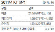 통신 기본요금 인하 등으로 KT가 부진한 2011년도 실적을 발표했다. KT는 6일 공시를 통해 2011년도 매출 21조9901원, 영업이익 1조9573억 원을 달성했다고 밝혔다. 2010년과 비교하면 매출은 8.1% 증가했지만 영업이익은 4.5% 감소한 수치다. 특히 4분기(10∼12월) 영업이익은 2010년 같은 기간보다 16.7%, 전 분기보다는 44.3% 줄어든 2876억 원으로 저조했다. 무선 부문에선 통신요금 기본료가 1000원씩 인하되고 할인요금제 비중이 늘면서 매출 자체가 1.3% 감소했다. 2세대(2G) 가입자를 3세대(3G)로 전환하는 데 드는 비용 1000억 원이 4분기에 반영되면서 전반적으로 부진한 실적을 나타냈다. 유선 부문 매출도 유선전화망(PSTN) 가입자가 71만 명 줄어들면서 2010년 대비 12.1% 감소했다. 하지만 지난해 전체 매출은 KT스카이라이프와 BC카드가 계열사로 편입된 영향으로 증가했다. 특히 인터넷 부문은 인터넷TV(IPTV) 가입자가 1년 새 100만 명이 늘고 초고속인터넷 결합상품이 인기를 끌면서 매출이 전년보다 4.6% 증가했다.이서현 기자 baltika7@donga.com}