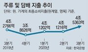지난해 3분기(7∼9월) 가계가 금융회사에서 빌린 돈과 주식 투자로 굴린 돈이 사상 최대 규모인 각각 53조 원, 23조 원으로 불어났다. 초저금리가 이어지자 투자자들이 은행에 넣어둔 장기 저축성 예금을 헐어 주식에 투자하거나 ‘빚투’(빚내서 투자)에 나서고 있다는 분석이 나온다. 7일 한국은행에 따르면 지난해 3분기 가계(비영리단체 포함)의 국내주식 투자 규모는 23조3328억 원으로 집계됐다. 관련 통계를 작성한 2009년 이후 최대 규모다. 1년 전(3926억 원)의 60배로 급증했다. 해외 증시로 가는 ‘서학개미’가 늘면서 해외주식 투자 규모(8조2608억 원) 역시 사상 최대였다. 1년 새 약 13배로 늘었다. 지난해 9월 말 현재 가계가 보유한 국내외 주식의 총 평가금액은 743조1495억 원에 이른다. 가계가 금융회사에서 빌린 대출금은 52조6454억 원으로 1년 전에 비해 125.4% 급증했다. 이 또한 2009년 통계 작성 이후 가장 큰 규모다. 역대 최대로 빚을 늘린 가계가 대출 일부나 예금을 헐어 주식 투자에 썼을 거라는 분석이 나온다. 정규채 한은 경제통계국 자금순환팀장은 “장기 저축성 예금이 계속 줄고 단기로 운용되는 것을 보면 예금에서도 돈을 빼 주식 투자를 하는 부분이 있다”고 했다. 김용범 기획재정부 1차관은 이날 거시경제금융회 모두발언에서 코스피 3,000 돌파와 관련해 “우리 경제와 기업 실적 회복에 대한 기대감이 주가에 강하게 반영되고 있다. 금융시장의 안정적 상승세가 지속되려면 실물경제 회복이 뒷받침돼야 한다”고 말했다.박희창 ramblas@donga.com / 세종=송충현 기자}