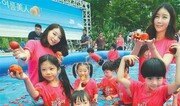 28일 오전 농협과 한국복숭아생산자협회가 서울시청 광장에서 ‘2015 복숭아 데이’ 행사를 가졌다. 행사는 ‘복숭아를 먹고 삼복더위를 이기자’는 취지로 기획됐다. 어린 아이들이 간이 풀장에서 물속 복숭아 잡기 체험을 하며 즐거워하고 있다. 양회성 기자 yohan@donga.com}