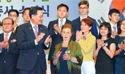광복 70주년을 맞아 12일 정부과천청사에서 열린 독립유공자 후손 국적증서 수여식 참석자들이 기념 촬영을 하고 있다. 법무부는 2006년부터 932명의 독립유공자 후손에게 대한민국 국적을 부여했다. 앞줄 왼쪽 네 번째부터 오른쪽으로 김현웅 법무부 장관, 이위종 지사 외손녀와 외증손, 김경천 장군 손녀 2명, 허주경 선생 손녀, 이인 초대 법무부 장관의 손자. 양회성 기자 yohan@donga.com}