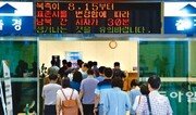 17일 경기 파주시 남북출입사무소에서 개성공단 관계자들이 한국보다 30분 늦춰진 북한의 새 표준시에 맞춰 북측으로 출경하고 있다. 이른바 ‘평양시’ 선포로 개성공단 통행 시간도 당초 한국 시간 오전 8시 반∼오후 5시에서 오전 9시∼오후 5시 반으로 바뀌었다. 파주=양회성 기자 yohan@donga.com}