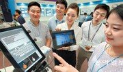 26일 미래창조과학부 주최로 서울 강남구 영동대로 코엑스에서 열린 ‘K-ICT 기술사업화 페스티벌’에 참여한 업체 관계자가 ‘3차원(3D) 공간 터치 기반 문자입력 기술’을 시연하고 있다. 27일까지 열리는 이 행사에는 정보통신기술(ICT) 연구 개발자 500여 명과 기술사업화 전문가들이 참여한다. 양회성 기자 yohan@donga.com}