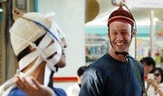 13일 오전 ‘제28회 인사전통문화축제’가 열린 서울 종로구 북인사마당에서 상모돌리기 체험을 하던 한 외국인이 자신이 돌리던 줄이 시범단원의 얼굴에 감기자 겸연쩍게 웃고 있다. 양회성 기자 yohan@donga.com}