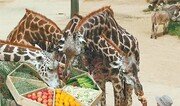 추석 연휴를 이틀 앞둔 24일 오전 경기 용인시 에버랜드 동물원에서 기린들이 햇과일 당근 근대 등이 담긴 ‘구절판’ 특식을 즐기고 있다. 양회성 기자 yohan@donga.com}