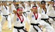 국군의 날(10월 1일)을 앞둔 30일 충남 계룡대 대연병장에서 열린 제67주년 국군의 날 행사 최종 리허설에서 특전사 대원들이 절도 넘치는 태권도 시범을 선보이고 있다. 계룡=양회성 기자 yohan@donga.com}