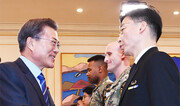 “소령 이국종!” 귀순 북한병 치료 과정에서 국민적 영웅으로 떠오른 아주대병원 권역외상센터장 이국종 교수가 1일 문재인 대통령과 악수하며 관등성명을 댔다. 문 대통령은 귀순 북한병 구조와 치료에 참여한 공동경비구역(JSA) 경비대대 한미 장병들과 이 교수를 청와대로 초청해 차담회를 갖고 격려했다. 이 교수는 이날 해군 정복을 입고 소령 계급장을 부착하고 차담회에 참석했다. 이 교수는 2011년 ‘아덴만의 여명’ 작전 당시 석해균 선장을 구한 공로로 2015년 해군 명예 대위로 임관했고, 올해 4월 소령으로 진급했다. 이 교수는 문 대통령을 공식 표현인 ‘대통령님’ 대신 ‘대통령 각하’라고 불렀다. 이 교수는 “자랑스러운 것은 대통령 각하께서 공수부대원이셨고, 그리고 저희 모두도 한때 현역 군인이었고 유사시가 발생하면 같은 일을 할 것”이라고 말했다. 문 대통령도 군 복무 시절 경험을 이야기했다. 문 대통령은 “저도 예전에 판문점 도끼만행사건 때 미루나무 제거 작전에 참여한 적이 있어서 그쪽 지역이 얼마나 예민하고 위험한 지역인지 잘 알고 있다. 여러분이 아주 정확하고 침착하게 상황관리를 해 줘서 그것이 더 큰 위기 상황으로 발전하지 않았다”고 격려했다. 문 대통령은 “중증외상센터가 1차적 외상치료에만 그치지 않고, 트라우마까지 치료할 수 있는 시스템을 갖추는 문제까지 되어 있는지 살펴보라”고 배석했던 참모들에게 지시했다. 한편 여야는 중증외상센터 관련 예산을 212억 원 증액하기로 합의했다. 이에 따라 400억4000만 원에서 612억4000만 원으로 늘어나게 됐다.한상준 alwaysj@donga.com·최고야 기자}