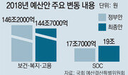 총 428조8339억 원 규모의 2018년 예산안이 진통 끝에 6일 새벽 국회 본회의에서 가결됐다. 여야는 국회 본회의를 열어 정부가 제출한 428조9714억 원에서 1375억 원을 순(純)삭감한 수정안을 찬성 160표, 반대 15표, 기권 3표(재적 의원 298명)로 통과시켰다. 자유한국당은 3명(신상진, 주호영, 김현아 의원)을 제외하고 표결에 불참했다. 내년도 예산안에는 4일 여야 3당이 합의한 △국가 공무원 9475명 증원(5300억 원) △최저임금 인상에 따른 영세기업 지원(2조9700억 원대) △아동수당 △기초연금 등이 포함돼 있다. 내년도 보건·복지·고용 예산은 144조7000억 원으로 원안보다 1조5000억 원 줄었다. 아동수당 도입과 기초연금 인상 시기가 미뤄진 데 따른 것으로 보인다. 반면 올해 예산 대비 20% 삭감됐던 지역구 의원들의 사회간접자본(SOC) 예산은 국회 심사 과정에서 원안보다 1조3000억 원 늘어난 19조 원으로 책정됐다. 여야가 보건·복지·고용 예산을 일부 줄이는 대신 SOC 예산은 슬그머니 늘리는 ‘짬짜미’ 전례를 답습했다는 지적이 나온다. 특히 예산안 처리에 협조한 국민의당 의원들이 대거 지역구를 둔 호남 예산 증액이 눈에 띈다. 증액 규모를 보면 광주∼강진고속도로는 454억5800만 원에서 1000억 원이 더 늘었다. 정부안에 없던 새만금개발공사 설립 비용이 510억 원 증액됐다. 전남 보성∼임성리 철도 건설 비용도 1999억 원에서 678억 원이 증액됐다. 함양∼울산고속도로건설은 1200억 원에서 400억 원이 더 늘었다. 앞서 정세균 국회의장은 5일 본회의에서 법인세법 및 소득세법 개정안을 먼저 상정해 통과시켰다. 법인세법 개정안은 과세표준 3000억 원 초과 구간을 신설해 세율을 25%로 올리는 것이고, 소득세법 개정안은 최고세율을 과표 구간 3억∼5억 원은 40% 등으로 2%포인트 상향하는 내용이다. 정 의장이 “12월 2일 법정시한이 지났는데 언제까지 기다려 줘야 하느냐. 시간을 얼마나 줬느냐”며 예산안을 상정하자, 자유한국당이 격렬히 반대해 본회의가 30분간 정회되는 등 진통을 겪었다. 장관석 jks@donga.com·최고야 기자}