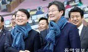 통합 논의를 진행하고 있는 국민의당 안철수 대표와 바른정당 유승민 대표가 14일 부산에서 만났다. 양당의 정책연대 모임인 ‘국민통합포럼’에 나란히 참석한 두 사람은 국민의당 경남도당 전 여성위원장으로부터 선물받은 똑같은 목도리를 두르고 악수를 나눴다. 하지만 통합에 대한 미묘한 온도차가 드러났다. 안 대표는 인사말에서 “역사에서 외연 확장 노력 없이 타협하고 그냥 선거를 치른 제3, 4정당들은 예외 없이 사라졌다. 그 교훈을 꼭 명심해야 한다”며 중도 통합의 필요성을 강조했다. 유 대표도 인사말을 통해 “국민의당과의 정책연대, 선거연대, 나아가 통합 문제에 대해 투명하게 드러내놓고 국민의 인정을 받는 진지한 협력이 차근차근 이뤄지기를 바란다”고 말했다. 하지만 유 대표는 자유한국당과의 재결합 가능성을 언급해 안 대표와는 약간의 견해차를 보였다. 유 대표는 포럼이 끝난 후 기자들과 만나 “국민의당과만 선거연대를 이야기하고 있는 중이지만 바른정당은 한국당과도 가능성을 열어뒀다”고 말했다. 이어 “한국당에서 그 가능성이 지금은 낮은데 앞으로 변할 수 있다고 본다”고 덧붙였다. 국민의당과의 통합에 대해서는 “완전한 통합까지 가지 않더라도 부분적 협력으로 결론이 날 수도 있고, 논의를 너무 오래 끌진 않겠다”고 말했다. 그러나 안 대표는 유 대표가 한국당과의 선거연대를 언급한 것에 대해 “저는 그럴 생각이 전혀 없다”고 일축했다. 국민의당에서는 안 대표가 내년 1월 중순쯤 바른정당과의 통합 논의를 마무리할 것이라는 관측이 나온다. 안 대표는 이르면 이번 주말쯤 유 대표와 회동을 추진할 것으로 알려졌다. 한편 국민의당 통합 반대파 의원들로 이뤄진 ‘평화개혁연대’와 ‘구당초(당을 구하는 초선들)’ 소속 의원 10명은 오찬 연석회의를 갖고 세몰이에 나섰다. 모임 후 조배숙 의원은 “만약 (안 대표가) 통합 절차를 진행할 경우 모든 힘을 다 모아서 총력 저지하겠다”고 말했다. 이날 오후 국민의당 박주선 전 비상대책위원장, 김동철 원내대표, 황주홍 박준영 의원은 별도의 입장문을 내고 “국민적 지지도, 당내 구성원 다수의 공감도 없는 상태에서 섣부르게 추진하는 통합은 당내 갈등만 부추긴다”고 주장했다. 최고야 best@donga.com·장관석 기자}