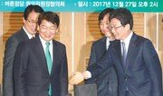 2018년 예산안 협상 과정에서 더불어민주당과 국민의당 간의 물꼬를 튼 고리의 하나는 이번에도 갑자기 튀어나온 ‘선거구제 개편’ 이슈였다. 그러나 자유한국당에선 “선거구제 개편이 위기의 순간만 되면 우려먹는 ‘사골’이 됐다”는 비판이 나왔다. 민주당 우원식 원내대표와 국민의당 김동철 원내대표는 4일 오전 한국당 정우택 원내대표를 제외한 채 조찬 회동을 했다. 두 사람은 “협상에 별 진전이 없었다”고 했지만 이 자리에서 예산안 처리에 대한 상당한 공감대가 이뤄졌다는 후문도 있다. 회동 이후 김 원내대표는 국회에서 기자들과 만나 “예산안이 타결되면 선거구제 논의를 본격적으로 추진하자고 합의했다”고 ‘별도 성과’를 밝혔다. 김 원내대표는 “개헌이나 선거구제 개편 논의가 묻히는 것 아닌가 걱정이 많아서 그 이야기를 했더니 우 원내대표가 기다렸다는 듯 ‘하루도 미룰 수 없는 긴급한 현안’이라며 인식을 같이했다”고 설명했다. 우 원내대표는 “국회 정치개혁특위와 개헌특위가 있으니 거기서 집중적으로 하자는 취지”라고 톤을 조절했다. 두 당 원내대표는 9월 김명수 대법원장 후보자 임명동의안 국회 처리가 위기에 빠졌을 때도 선거구제 이슈를 거론한 적이 있다. 하지만 동의안 가결을 위한 물밑거래가 있었다는 논란이 불거지기도 했다. 이날 취임 100일을 맞은 국민의당 안철수 대표도 기자간담회에서 “개인적으로는 정당명부식 비례대표제가 맞는다고 보지만, 소선거구제만 바꿀 수 있다면 중대선거구제까지 받을 수 있다”고 강조했다.최우열 dnsp@donga.com·최고야 기자}