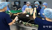 “사고가 난지 2주가 지나 근육이 수축됐고 조직도 변성됐다. 쉽지 않은 수술이 될 것이다.” 17일 낮 12시 전남 구례 국립공원관리공단 종복원기술원 내 야생동물의료센터 직원들의 움직임이 바빠졌다. 센터와 함께 수술을 집도하는 강성수 전남대 수의외과 교수의 표정은 밝지 않았다. 이송차량 들것에는 세 살배기 수컷 반달가슴곰인 ‘KM-53’이 누워있었다. 지난해 지리산을 2번이나 탈출해 100km 떨어진 김천 수도산까지 간 그 반달곰이다. 곰의 개척자란 의미에서 ‘반달가슴곰계의 콜럼버스’로 불리는 KM-53은 한눈에도 야윈 모습이 역력했다. 사고를 당한 왼쪽 앞발은 위로 꺾인 채 퉁퉁 부어있었다. “살아남은 게 ‘기적’이에요.” 정동혁 센터장이 말했다. 다 자란 야생 반달가슴곰의 복합골절수술은 세계 최초다. KM-53은 이달 5일 세 번째로 지리산을 탈출했다가 대전-통영간 고속도로에서 시속 100km로 달리던 관광버스에 치여 왼쪽 앞발 상완골(어깨~팔꿈치 구간)이 산산조각 났다. 수술은 한나절 넘게 진행됐다. 흩어진 뼛조각을 맞추고 근육과 다른 조직을 제자리로 돌려놓는 대수술이었다. 수술을 마친 정 센터장은 “한 달 이상 경과를 지켜본 뒤 재방사 여부를 결정하겠다”고 말했다. 전문가들은 재방사 시 KM-53이 다시 수도산 쪽으로 향할 가능성이 높다고 보고 있다. 두 번이나 지리산으로 보냈지만 탈출했고, 이동경로도 매번 비슷했기 때문이다. 종복원기술원과 함께 곰의 생태를 연구해온 장이권 이화여대 에코과학부 교수는 “곰은 만 2세 청년이 되면 영역 확보에 나서는데, KM-53는 지리산 내 영역다툼에서 밀려 수도산까지 이동했을 가능성이 크다”며 “그곳에서 동굴 등 맘에 드는 서식환경을 발견한 것으로 추정된다”고 말했다. 문제는 KM-53뿐 아니라 반달곰들의 ‘엑소더스’가 광범위하게 일어날 가능성이 높다는 점이다. 기술원에 따르면 5월 현재 만 2세 이하 곰은 20마리로 이 중 수컷이 9마리, 암컷이 2마리, 미확인개체가 9마리다. 현재 청년기인 만 3~5세 수컷도 10마리에 이른다. 수컷은 암컷보다 더 넓은 영역을 확보하려는 속성이 있다. 현재 지리산에 사는 반달가슴곰은 56마리로 수용가능 개체수(78마리)에는 못 미치지만 밀집 정도에 따라 이미 포화상태에 이른 구역이 있는 것으로 추정된다. 곰들의 잇단 타출은 시간문제란 얘기다. 지난해 두 살 수컷곰 KM-55가 지리산을 탈출해 전남 광양 백운산에서 겨울을 났다. 지리산 밖에서 동면한 건 반달곰을 방사한 이후 처음이다. 이 곰은 최근 인근 양봉농가의 벌통을 부수고 꿀을 훔쳐 달아났다. 기술원은 곰의 탈출경로를 크게 3군데로 보고 무인센서 설치를 건의하기로 했다. 지리산 북쪽 덕유산, 남쪽 백운산 방향 등이다. 하지만 센서 설치 외에 별다른 대책이 없다는 게 문제다. 환경부는 23일 경북 김천에서 지리산 인근 광역·기초지자체, 시민단체와 함께 회의를 연다.구례=이미지 기자 image@donga.com}