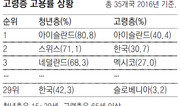 한국은 ‘노인만 일하는 나라’라는 점이 국제 통계 비교를 통해 다시 한 번 확인됐다. 65세 이상 고령층 고용률이 경제협력개발기구(OECD) 35개국 가운데 2위였지만 일하는 청년층(15∼29세) 비중은 남유럽 국가와 비슷한 최하위권에 그친 것으로 집계됐다. 1일 국회예산정책처에 따르면 2016년 한국의 65세 이상 고령층 고용률은 30.7%로 아이슬란드(40.4%)에 이어 OECD 회원국 중 2위였다. 한국 노인 10명 중 3명이 일을 하고 있다는 의미로 프랑스(2.8%), 독일(6.6%)은 물론이고 미국(18.6%), 일본(22.3%)보다 높은 수치다. 통상 연금제도가 발달하지 못한 국가는 고령층 고용률이 높다. 노인들이 연금 수입이 없어 일을 해야 먹고살 수 있기 때문이다. 반면 청년들은 일자리를 찾지 못하고 있다. 한국 청년층 고용률은 42.3%로 OECD 회원국 중 29위에 그쳤다. 한국보다 청년 고용률이 더 낮은 OECD 국가는 경제 위기를 겪었던 그리스(28.6%) 스페인(37.1%) 등 5개국에 불과했다. 고용률은 전체 생산가능 인구 가운데 취업자가 차지하는 비율을 가리킨다. 대학 진학률이 세계 최고 수준이고 군 의무복무제가 있는 한국 특성상 선진국에 비해 청년 고용률이 높지 않다. 실제로 한국 청년층의 경제활동 참가율(46.9%)은 이탈리아(41.6%), 그리스(46.4%)에 이어 OECD 회원국 가운데 뒤에서 세 번째였다. 이런 이유와 함께 청년 일자리 부족 때문에 고용률이 좀처럼 오르지 않는다는 지적도 많다. 각종 고용 통계에서 고령층을 제외하면 한국 성적표는 나쁘다. 한국의 15세 이상 전체 고용률은 60.4%로 OECD 평균(56.4%)은 물론이고 미국(59.7%), 독일(58.4%) 등 주요 선진국보다 높다. 하지만 고령층을 뺀 15∼64세 고용률은 한국이 66.1%로 OECD 평균(67.0%)보다 낮다. 그만큼 일하는 노인이 많다는 의미다. 국회예산정책처는 “한국은 노후 보장이 부족해 은퇴한 뒤 노동시장에 재진입하는 노인이 많다. 사회안전망을 강화해 고령층 고용률을 장기적으로 OECD 평균 수준까지 맞출 필요가 있다”고 조언했다. 세종=박재명 기자 jmpark@donga.com}