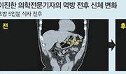 《‘먹방’은 TV와 유튜브의 핵심 콘텐츠 중 하나다. 많이 먹고 빨리 먹는 게 감탄의 대상이다. 하지만 누구도 그 뒤는 생각지 않는다. 생명을 건 유희, 먹방의 세계를 이진한 의학전문기자가 직접 체험해봤다. 》 ‘먹방’은 유튜브를 대세로 만든 일등공신 중 하나다. 10인분 이상 엄청난 양을 먹는 먹방은 기본이고 3, 4명이 빨리 먹기 시합을 하는 푸파(푸드파이터) 방송도 인기다. 프로 ‘먹방러’ 중에선 구독자가 100만 명이 넘는 유튜버도 적지 않다. 하지만 이는 생명을 담보로 한 유희다. 특히 청소년이나 아동이 먹방을 위해 엄청난 양을 먹는 건 ‘자해’와 다름없다는 게 전문의들의 지적이다. 먹방이 신체에 어떤 결과를 가져오는지 동아일보 의학전문기자가 직접 체험해 봤다. 먹방 전후 위(胃) 모양을 3D CT(입체 컴퓨터단층촬영)로 찍어보니 결과는 충격적이다. 30배가량 늘어난 위 사진을 보는 것만으로 정신이 번쩍 들었다. 이번 먹방 도전에는 채널A 남혜정 기상캐스터도 함께 했다.● 꾸역꾸역 초밥 5인분을 먹고 나니 5일 먹방 도전에 앞서 몸 상태를 점검했다. 몸무게는 66.1㎏, 체질량지수(BMI)는 23.7(25이상 비만)이었다. 먹방을 시작하기 전 위의 부피는 11만9196㎣로 약 0.12L였다. 어떤 음식을 선택할지 고민하다가 몇 개나 먹었는지 쉽게 알 수 있는 초밥을 택했다. 초밥 30인분을 주문하자 큰 식탁 가득 찼다. 이날 낮 12시 반 초밥을 먹기 시작했다. 빨리 먹으면 많이 먹을 수 없을 것 같아 남 캐스터와 대화를 하며 가능한 한 천천히 먹으려 노력했다. 하지만 초밥 2인분을 먹자 배가 가득 찼다. 3인분부터는 확실히 위에서 부대끼는 느낌이 강했다. 4인분부터는 삼키는 것조차 힘들었다. 계속 물을 마시면서 초밥을 넘겨 배가 더 불러왔다. 꾸역꾸역 1시간동안 5인분을 먹었다. 남 캐스터도 3인분을 먹었다. 남 캐스터는 “나중에는 음식 맛을 느끼는 것 자체가 힘들었다”며 “매일 먹방을 하는 분들이 한편으로 대단하다고 생각했다”고 말했다.● 위 부피, 먹기 전 30배로 부풀어 초밥 5인분을 먹은 뒤 신체 변화를 살폈다. 몸무게는 1시간여 만에 1.3㎏나 늘었다. 체질량지수는 24.2로 0.5가 증가했다. 놀라운 건 3D CT 사진이었다. 위의 부피가 350만6448㎣(약 3.53L)로 커졌다. 1시간동안 먹은 초밥 5인분에 위가 먹방 전보다 29.4배로 커진 것이다. 사람의 위는 보통 최대 4L까지 늘어나는 것으로 알려져 있다. CT 영상을 살펴본 에이치플러스 양지병원 김진수 소화기내과 과장은 “정상인은 식사 전후로 위의 용적이 2배 정도 늘어나는데 이진한 기자는 먹방 전후로 위가 30배 가까이 커졌다”며 “의사인 나도 먹방 이후 위가 이렇게나 많이 늘어날지 상상하지 못했다”고 놀라움을 감추지 못했다. 기자는 이날 오후 내내 속이 더부룩했다. 결국 저녁을 거르고 소화제를 복용했는데도 밤새 속이 불편했다. 보통 한 끼 식사가 위에 머무는 시간은 대략 3~5시간이다. 5인분을 먹었으니 위의 활동성이 크게 떨어졌을 뿐 아니라 머문 시간도 몇 배 더 길었을 것으로 추정된다. 다음날 아침 위 속에 음식물이 다 내려갔는지 배고픔이 유난히 심했다. 위가 크게 늘어났던 게 공복감을 더 느끼게 만든 원인으로 보인다.● 청소년, 아동 먹방은 더 위험 초밥 5인분은 유명 먹방러들에게 명함도 내밀 수 없는 양이다. 앉은 자리에서 10인분씩 먹는 건 문제가 없을까. 김진수 과장은 “위에 많은 양의 음식이 갑자기 들어가면 위에 염증이 생기거나 역류성 식도염을 유발할 수 있다”며 “이런 먹방을 지속하면 당뇨병과 고혈압, 고지혈증 외에도 심장기능이 떨어지는 울혈성 심부전증, 비만, 관절 문제 등이 생길 수 있다”고 경고했다. 또 잦은 폭식으로 늘어난 위는 줄어들지 않기 때문에 위가 포만감을 느끼기 위해 다음에도 그만큼 많이 먹는 악순환으로 위에 엄청난 부담을 줄 수 있다. 최근에는 청소년이나 아동들도 먹방에 뛰어들고 있다. 이들의 먹방은 더 치명적이다. 우리아이들병원 소아청소년과 백정현 원장은 “아이들은 성인에 비해 위산 분비가 적고 상대적으로 소화 능력이 떨어진다”며 “한꺼번에 많은 양의 음식을 먹으면 복통이나 구토, 설사를 유발하기 쉬울 뿐 아니라 성인에게 잘 생기는 위염이나 위·식도 역류염도 생길 수 있다”고 지적했다. 또 과도한 음식물을 소화하려면 우리 몸에 활성산소가 많이 생기는데, 활성산소가 많아지면 결국 면역력 저하로 이어진다. 이는 감기 등 전염성 질환에 취약해지는 원인 중 하나다. 이 때문에 전문가들은 청소년이나 아동들의 먹방은 정부 차원에서 규제가 필요하다고 말한다.● 실제 많이 먹어 숨진 경우도 지난해 미국의 19세 여성은 음식을 많이 먹은 뒤 위가 커진 상태에서 구토를 하다가 위와 식도가 찢어져 숨진 일도 있다. 2016년 일본에선 20인분을 넘게 먹은 한 60대 여성이 평소보다 위가 40~50배 커져 심장으로 들어가는 혈관을 눌러 혈류장애로 사망하기도 했다. 아주대병원 정신건강의학과 장형윤 교수는 “아이들의 먹방은 건강에 해로울 뿐 아니라 영양불균형으로 인해 성장에 악영향을 미치고 섭식장애로 이어질 수 있다”며 “극단적 수준으로 진행될 경우 이는 자해