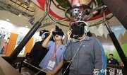 22일 광주 서구 김대중컨벤션센터에서 최첨단 문화콘텐츠를 체험할 수 있는 ‘2016 광주 에이스 페어’가 개막한 가운데 관람객들이 열기구를 타고 가상현실(VR)을 체험하고 있다. 이번 행사는 국내 최대 규모의 문화콘텐츠 종합 전시행사로 25일까지 열린다. 박영철 기자 skyblue@donga.com}