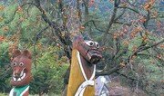 황금빛과 붉은빛으로 물들어 가는 계절이다. 3일 전북 정읍시 산내면의 한 들녘, 익살스러운 장승 뒤편으로 커다란 감나무에 잘 익은 홍시가 주렁주렁 매달려 있다. 박영철 기자 skyblue@donga.com}