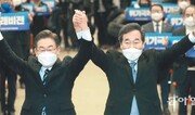 “단결된 힘으로 새로운 나라를 함께 만들겠다.”(더불어민주당 이재명 대선 후보) “이재명 동지와 민주당이 해내겠다. 그 길을 광주·전남도 함께 가달라.”(이낙연 전 대표) 이 후보가 5일 이 전 대표와 함께 당의 텃밭인 광주를 방문해 63일 남은 대선까지 ‘원팀 행보’에 박차를 가했다. 지난해 12월 23일 회동 이후 두 사람이 광주를 공동으로 찾은 것은 이날이 처음이다. 이 후보와 경선에서 치열하게 경쟁했던 이 전 대표는 이날 자신의 정치적 고향인 호남에서 지지층 총결집을 당부했다.○ 李, “이낙연과는 선거 후에도 동행”이 후보는 이날 광주 서구 김대중컨벤션센터에서 열린 국가비전·국민통합위원회(비전위) 광주지역 회의에서 김대중(DJ) 전 대통령의 이름을 거듭 외치며 호남지역 지지를 호소했다. 전날 새해 첫 기자회견 장소도 DJ가 2001년 외환위기 조기 종식을 선언했던 경기 광명시 소하리 기아 공장으로 선택한 데에 이어 이틀째 ‘DJ 정신’ 강조에 나선 것. 이 후보는 “대한민국에서도 호남, 그중에서도 광주, 그 안에서도 대한민국을 빛내는 세계적 지도자 김대중 대통령을 기리는 회관에서 뵙게 돼 반갑다”고 인사했다. 이어 ‘민주 진영의 통합과 연대의 정신’도 강조했다. 그는 “우리는 힘을 합치고 있다”며 “그 전에 이런 일은 없었다고 한다. 경쟁했던 모든 후보들이 정말 혼신의 힘을 다해서 할 수 있는 최대치의 역할을 해주고 계신다”고 했다. 이어 열린민주당과의 통합 및 과거 탈당자들의 복당을 언급하며 “하나의 전선으로 다시 모이고 있다. 단결된 힘으로 이 위기를 기회로 만들면서 새로운 나라 함께 만들겠다”고 했다. 선거대책위원회 전면 해체 등 극심한 내분을 겪고 있는 국민의힘을 상대로 호남을 시작으로 지지층 결집을 보여주며 승리의 쐐기를 박겠다는 포석으로 보인다. 이날 이 후보와 이 전 대표는 나란히 행사장에 입장한 뒤 가운데 자리를 서로 양보하는 등 화기애애한 분위기를 이어갔다. 이 전 대표는 “(정치적 민주주의에 이어) 사회경제적 민주주의를 우리가 해내야 한다”며 “그 일을 이재명 동지와 민주당이 해내겠다”고 했다. 이 후보는 이날 행사 후 기자들과 만나 ‘대선 이후에도 이 전 대표와의 행보를 이어 가느냐’는 질문에 “진영을 가리지 않겠다고 했는데, 진영 내에서 가장 우수한 경륜과 경험 학식 역량을 가진 이 전 대표를 빼고 어떻게 다음을 도모하겠느냐”며 “선거 국면에서 최선을 다해 함께하고, 선거 후에도 민주 세력 어른으로 잘 모시겠다”고 답했다.○ 민주당 “당 혁신, 선대위 쇄신” 내부 결속 신년 각종 여론조사에서 이 후보가 앞서는 것으로 나타났지만 민주당은 이날 다시 한 번 내부 결속에 나섰다. 민주당 선거대책위원회 전략기획본부장을 맡고 있는 강훈식 의원은 이날 “당의 본격적인 혁신과 선대위 쇄신에 나서겠다”며 “대선 기여도를 지방선거 공천에 적극 반영하고, 선대위 인원의 30%를 지역과 현장으로 파견해 ‘리스너 프로그램’을 활성화하겠다”고 밝혔다. 민주당은 또 문제를 일으키는 선대위 인사는 즉각 선대위 제명 또는 출당 조치를 하는 ‘원 스트라이크 아웃’ 제도도 도입하기로 했다. 자칫 해이해질 수 있는 분위기를 다잡고, 6월 지방선거 공천 인센티브를 앞세워 지역 조직을 강화해 확실한 승기를 굳히겠다는 의도다. 강 의원은 “여러 여론조사에서 이 후보 우세로 돌아선 것은 사실”이라면서도 “유권자는 투표 2, 3주 전에 마음을 정한다”고 했다. 민주당의 이런 움직임은 극심한 자중지란을 겪었던 국민의힘이 이날 선대위를 해체하고 윤석열 후보를 중심으로 한 본격적인 ‘원톱’ 체제를 구축한 것도 영향을 미쳤다는 분석이 나온다. 이 후보 역시 본격적으로 활동 폭을 넓힌다. 이 후보는 오미크론 변이 확산으로 잠정 중단했던 지역 방문 유세도 7일 서울을 시작으로 재개한다. 특히 이 후보는 8일 서울 재건축 현장을 방문해 주민들과 ‘타운홀 미팅’도 가질 예정이다. 민주당 관계자는 “이 후보가 설 전으로 예정된 공급 대책 발표를 앞두고 재건축에 대한 주민들의 목소리를 듣기 위한 것”이라며 “그 목소리를 재건축·재개발 규제 개선 방안에 담을 수 있도록 할 것”이라고 말했다. 박훈상 기자 tigermask@donga.com}